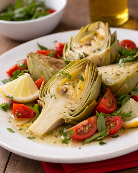 I carciofi brasati al limone e pomodorini sono un piatto genuino, raffinato e sorprendentemente semplice da preparare. Questa ricetta valorizza al meglio il sapore delicato dei carciofi, esaltandone la tenerezza con la nota fresca e agrumata del limone e la dolcezza naturale dei pomodorini ciliegino. Il risultato è un contorno elegante, leggero e saporito, perfetto per accompagnare secondi di carne, pesce oppure da gustare da solo con del buon pane casereccio.