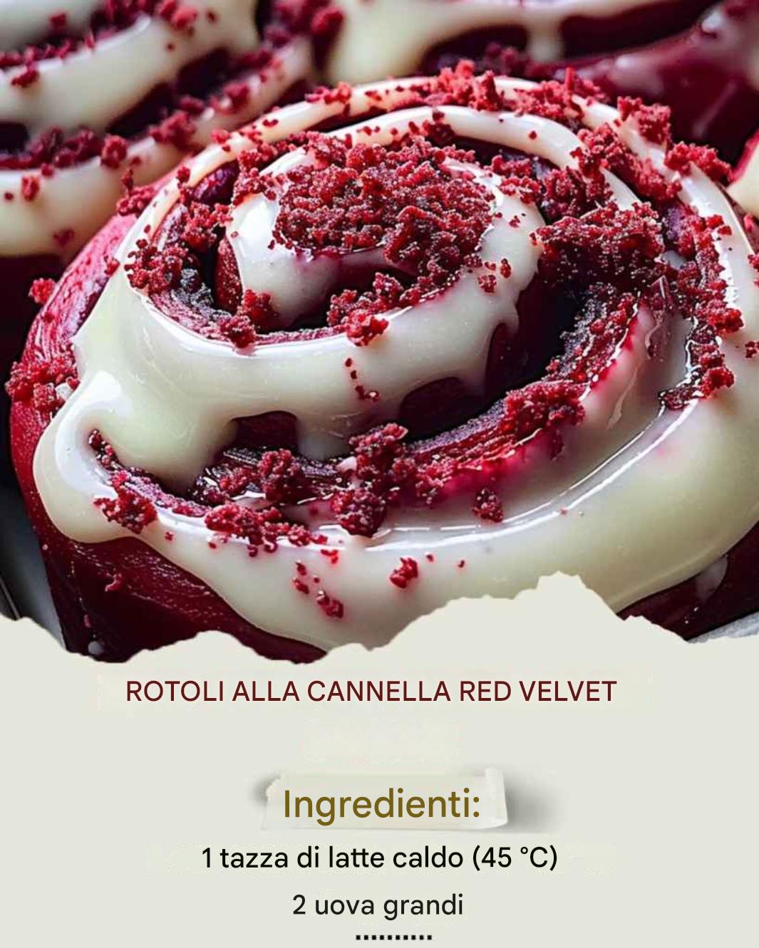 racchiudono tutto ciò che ami dei classici cannella rolls, arricchendoli con un tocco di cacao e una splendida tonalità rossa. Con un vortice di burro, cannella e zucchero e una deliziosa glassa al formaggio cremoso, questi rotoli sono tanto golosi quanto accattivanti: perfetti per le feste, il brunch o qualsiasi occasione speciale.