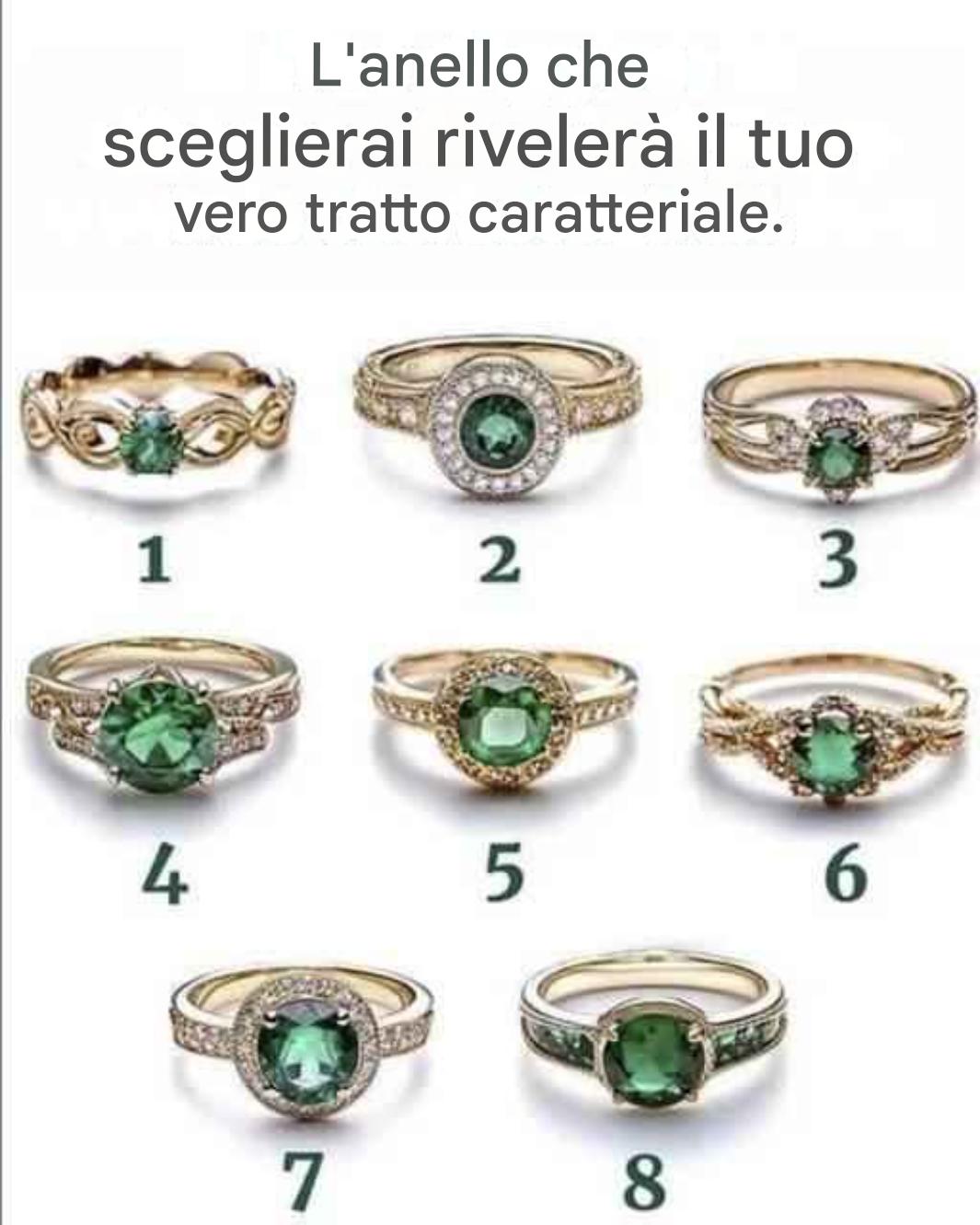 La donna che sceglie l'anello numero 4 non si limita a sognare, ma agisce. Possiedi un'energia contagiosa, una solida fiducia in te stessa e una forte ambizione. Per te, le sfide sono opportunità sotto mentite spoglie. Nulla può fermarti: né progetti ambiziosi, né percorsi inesplorati. E questa determinazione spesso ti spinge lontano. Una vera forza trainante per chi ti sta intorno!